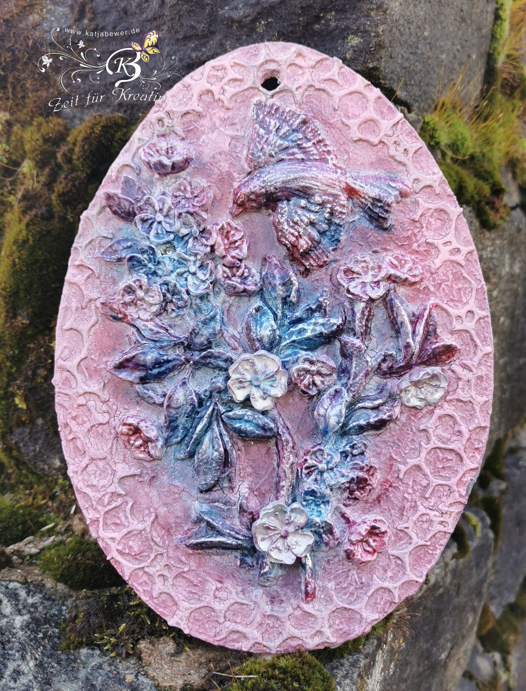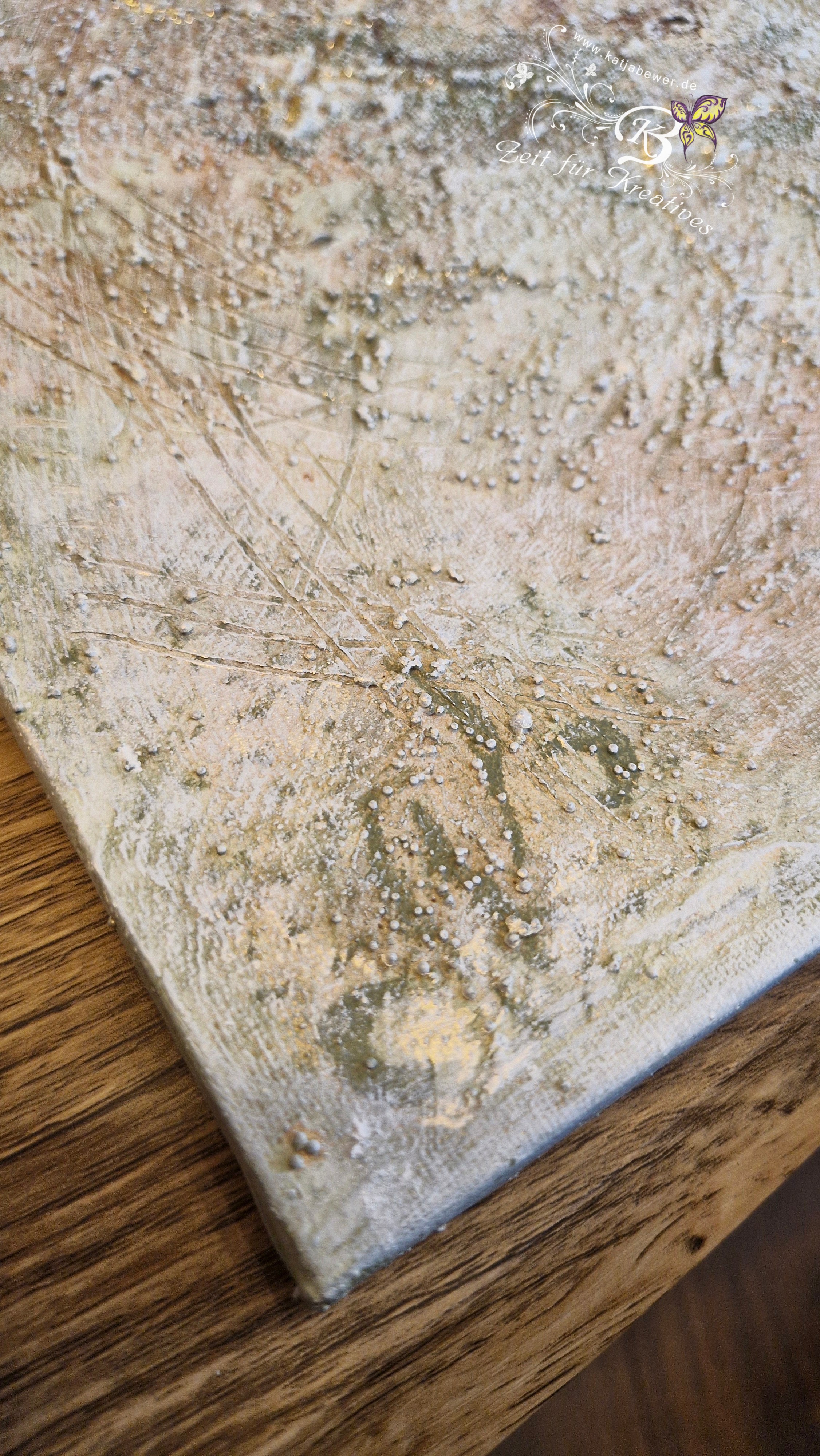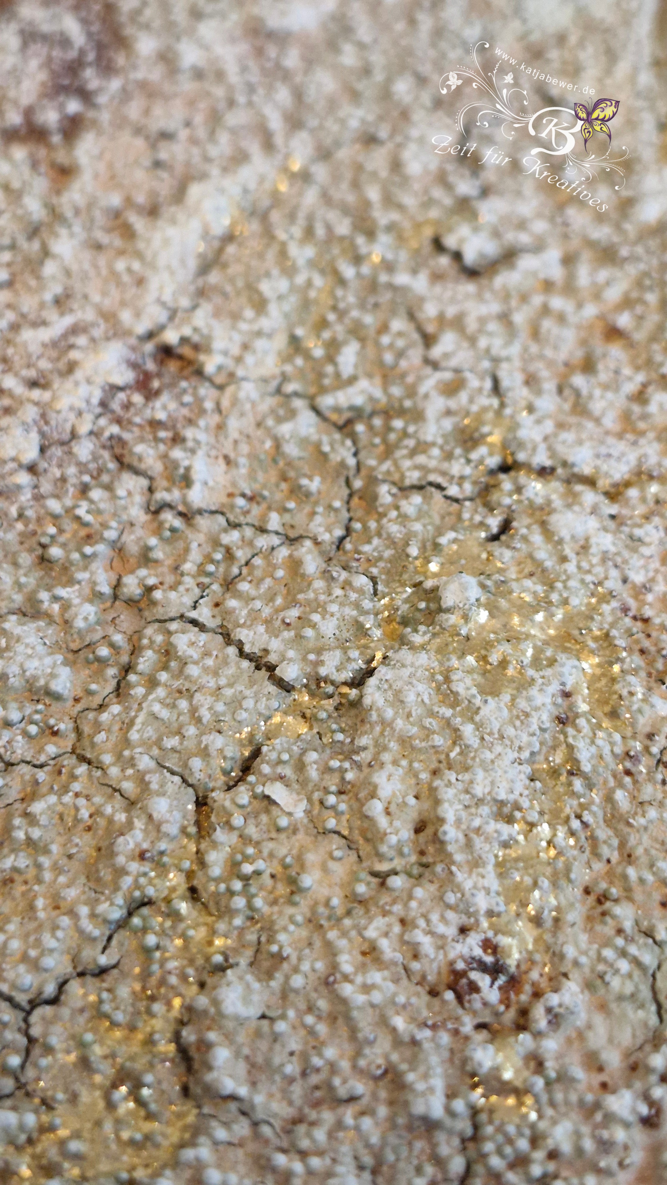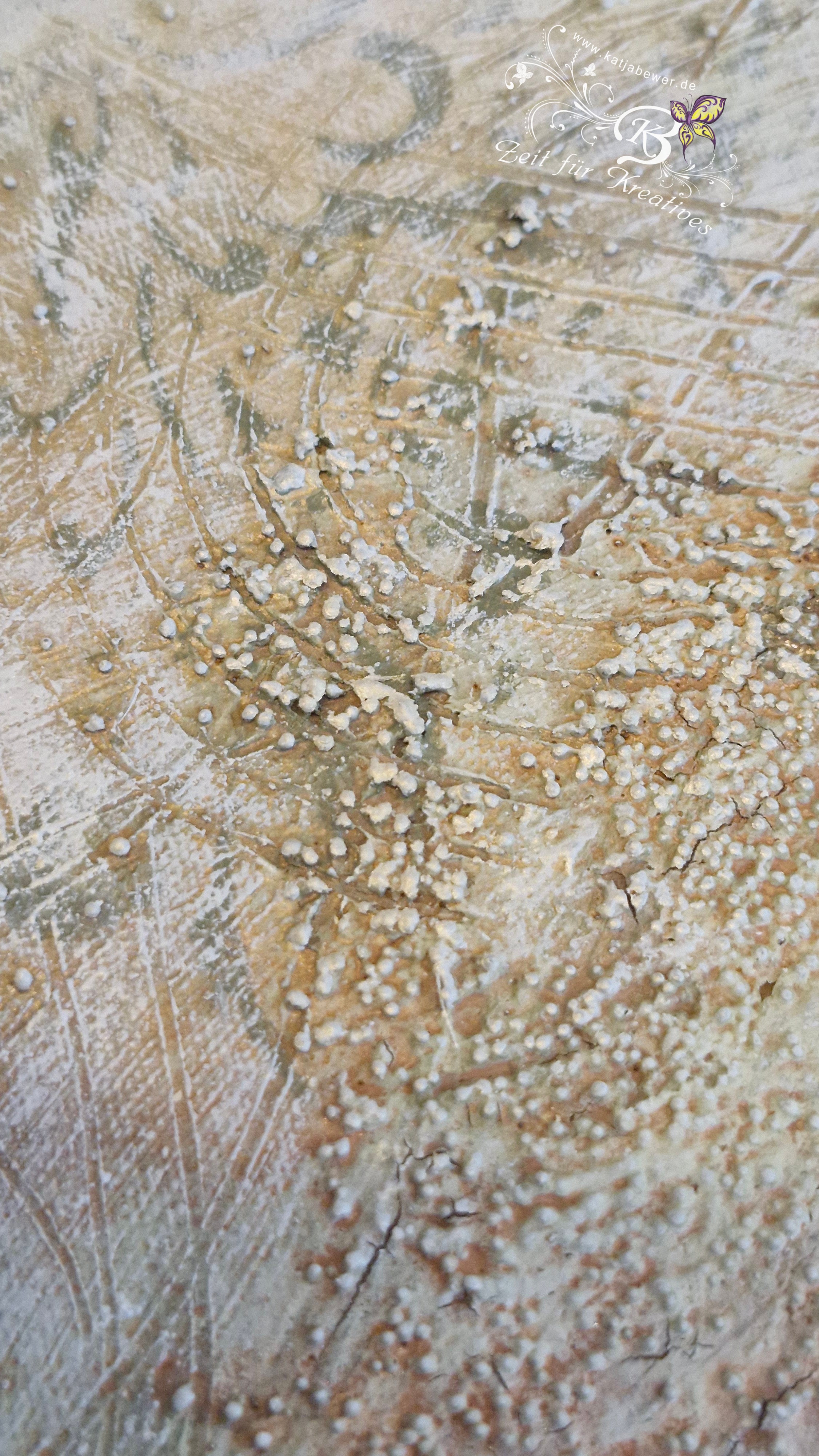 Gearbeitet habe ich mit den Farben von Aquarylic, Strukturen gearbeitet mit Graumehl und Micro-Perlen.