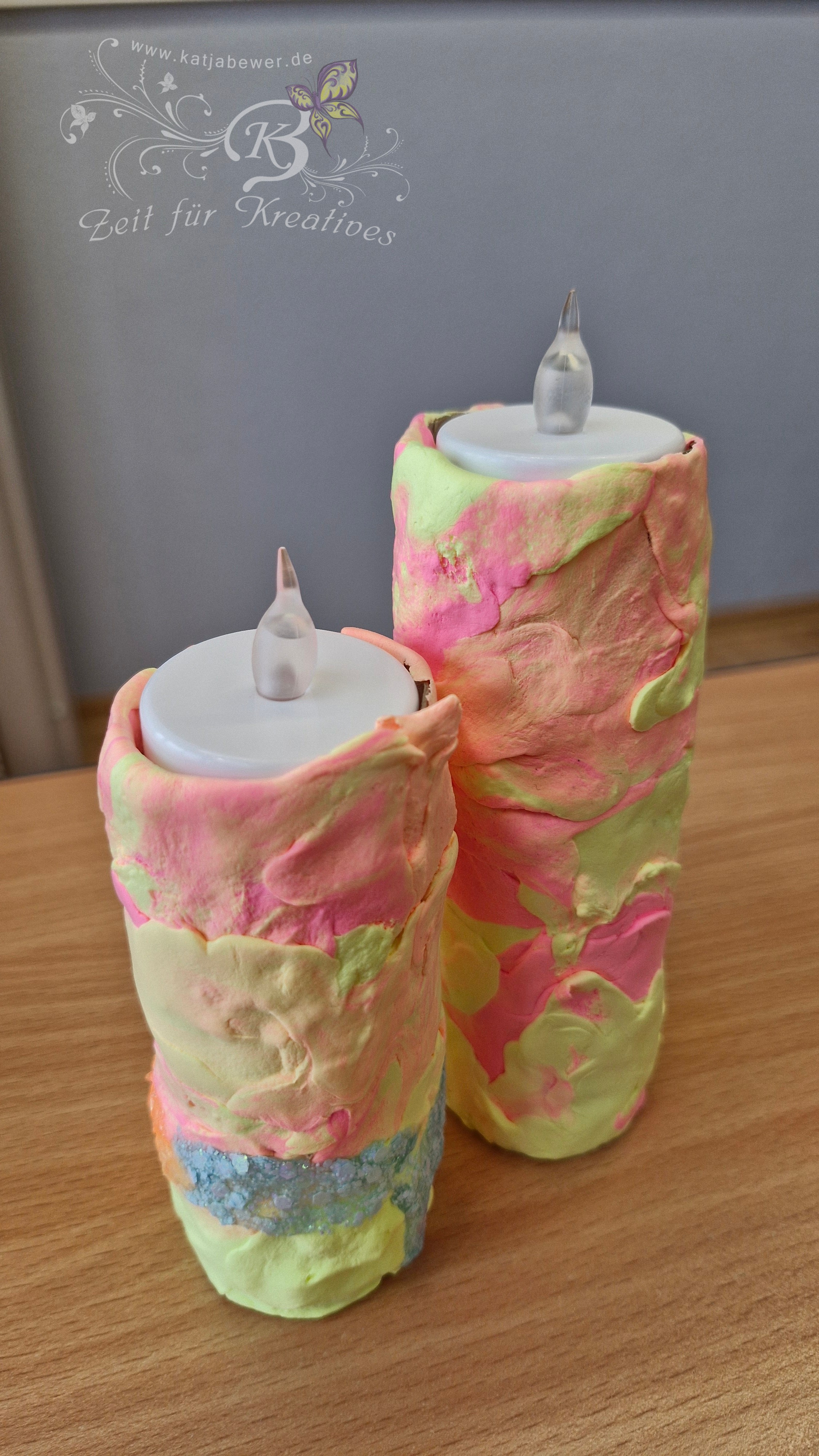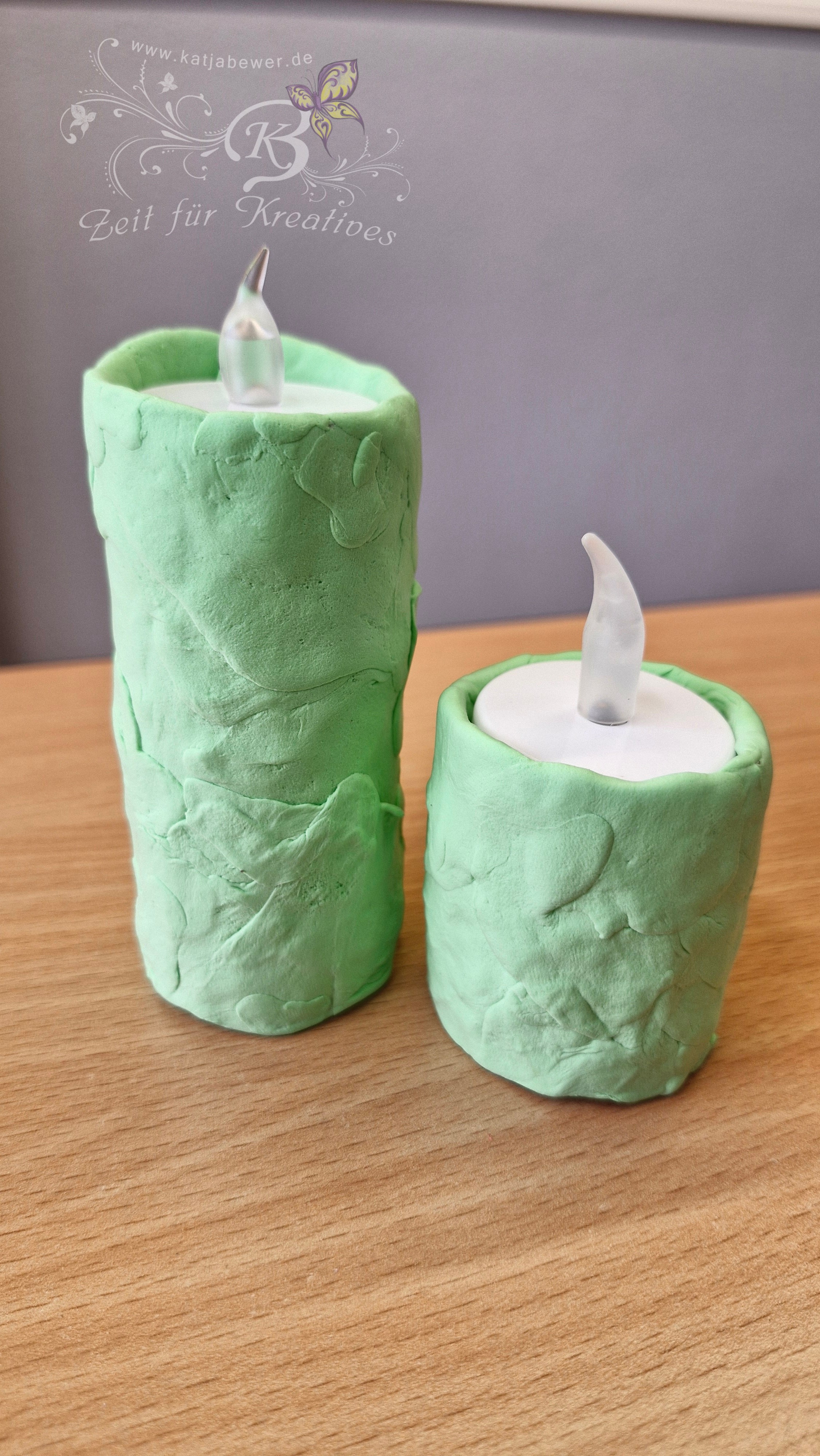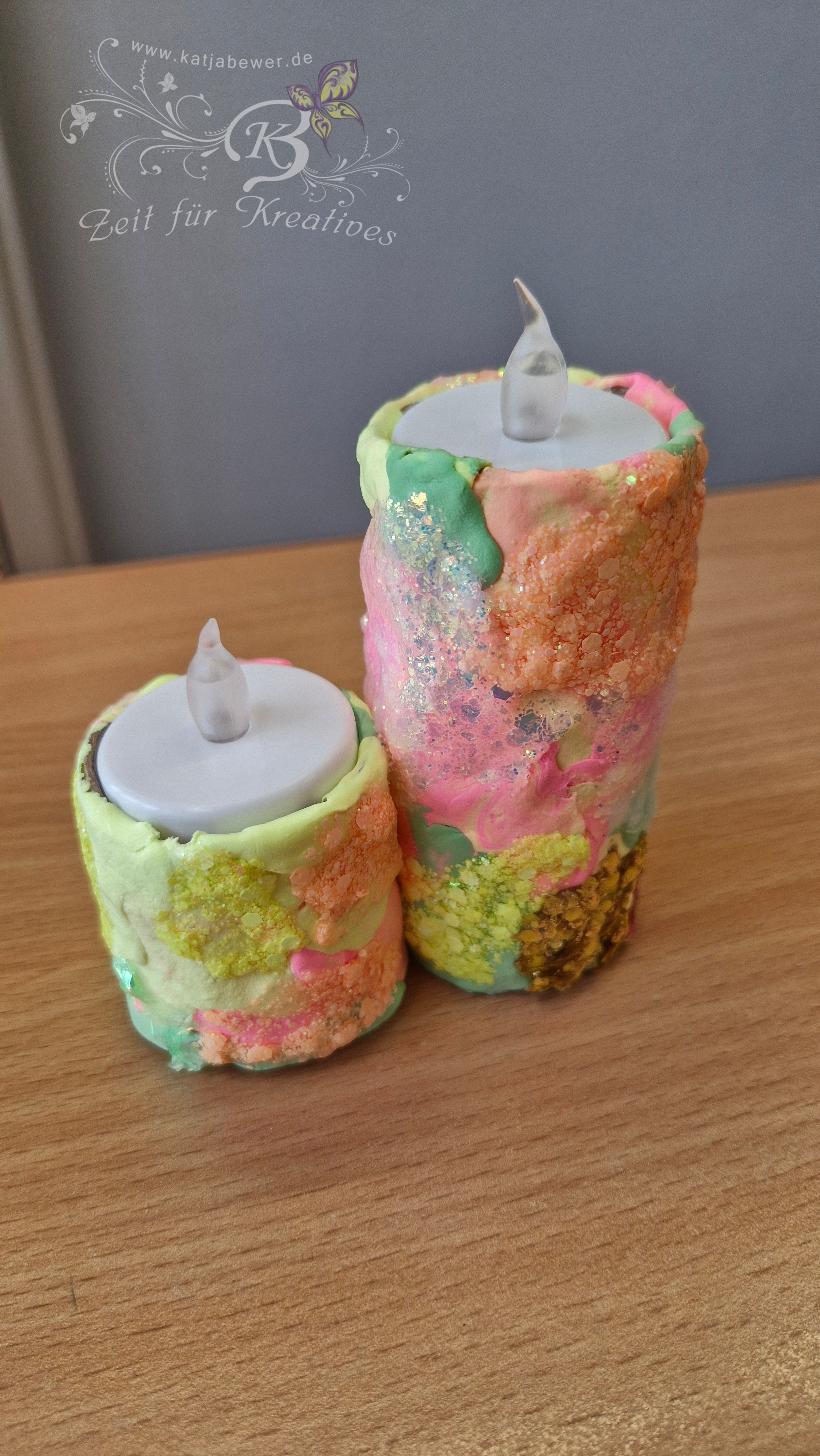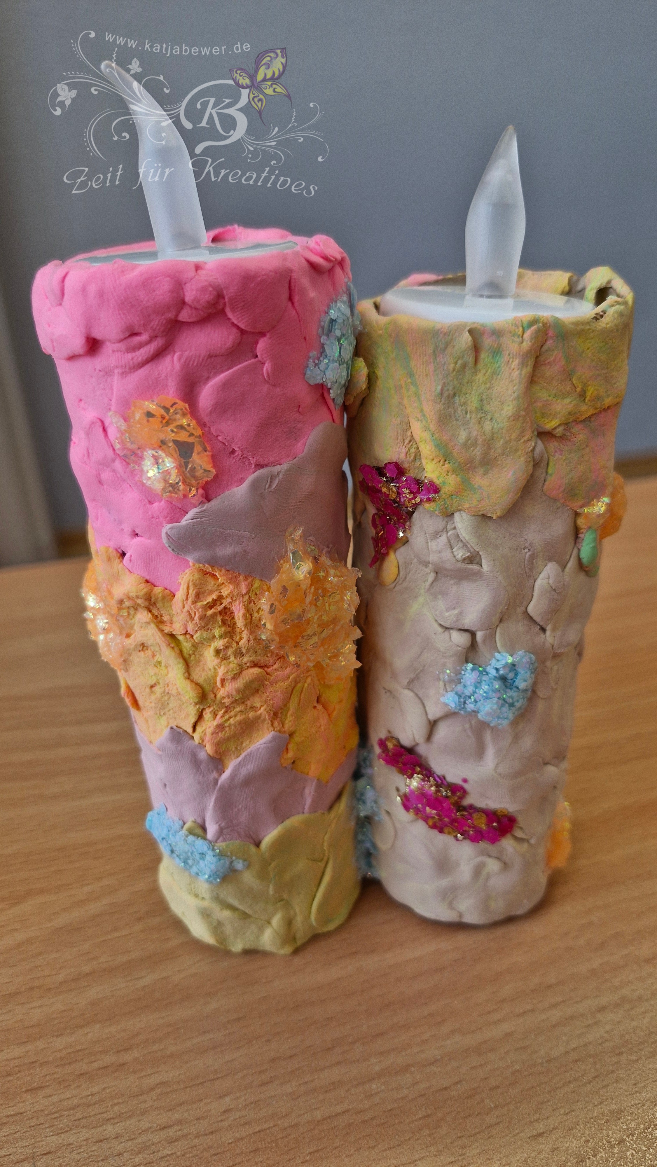 Diese Kerzen werkel ich seit vielen Jahren immer wieder gern mit Kindern. Da aus hygienischen Gründen keine gesammelten Klopapierrollen mehr zum Einsatz kommen sollen verwende ich Mittlerweile die Papprollen vom Küchenpapier und schneide diese auf die gewünschte Große zu.