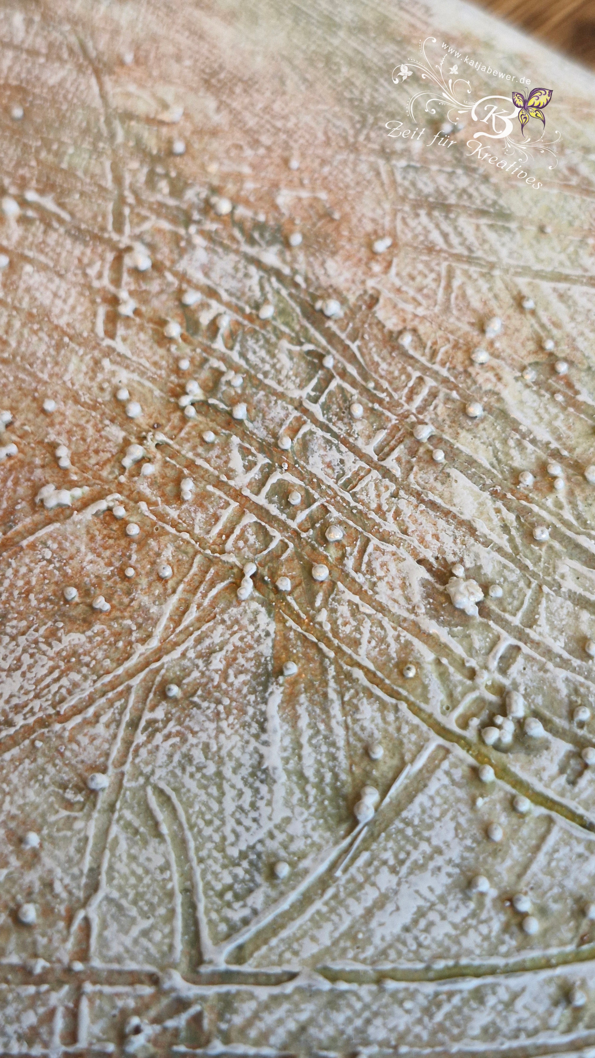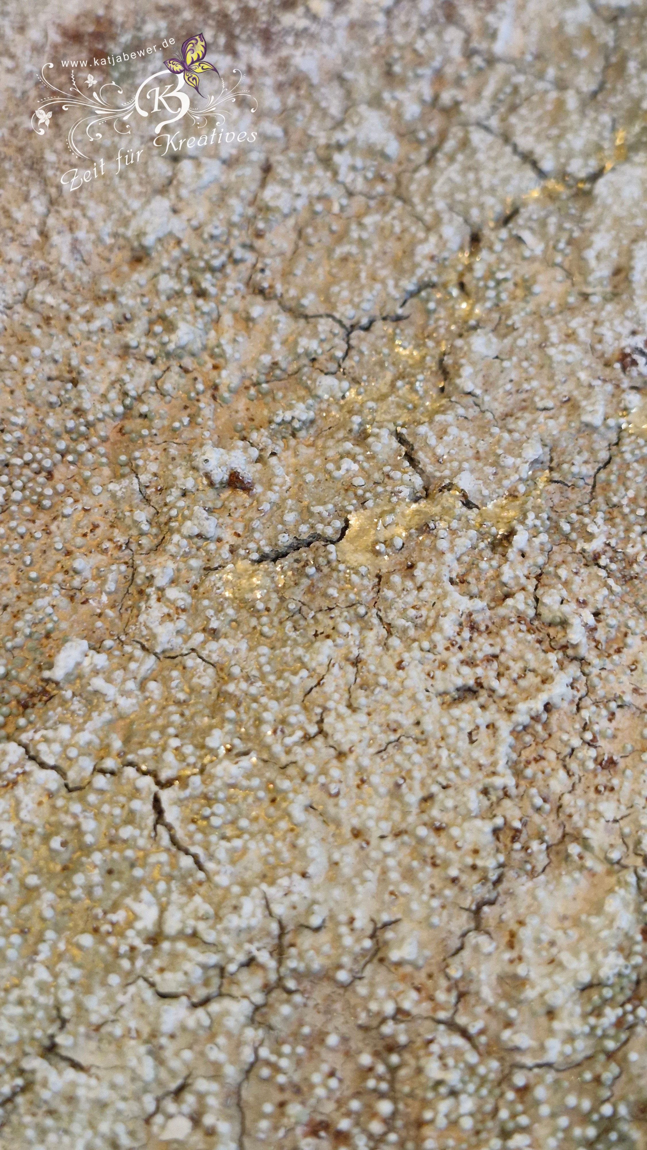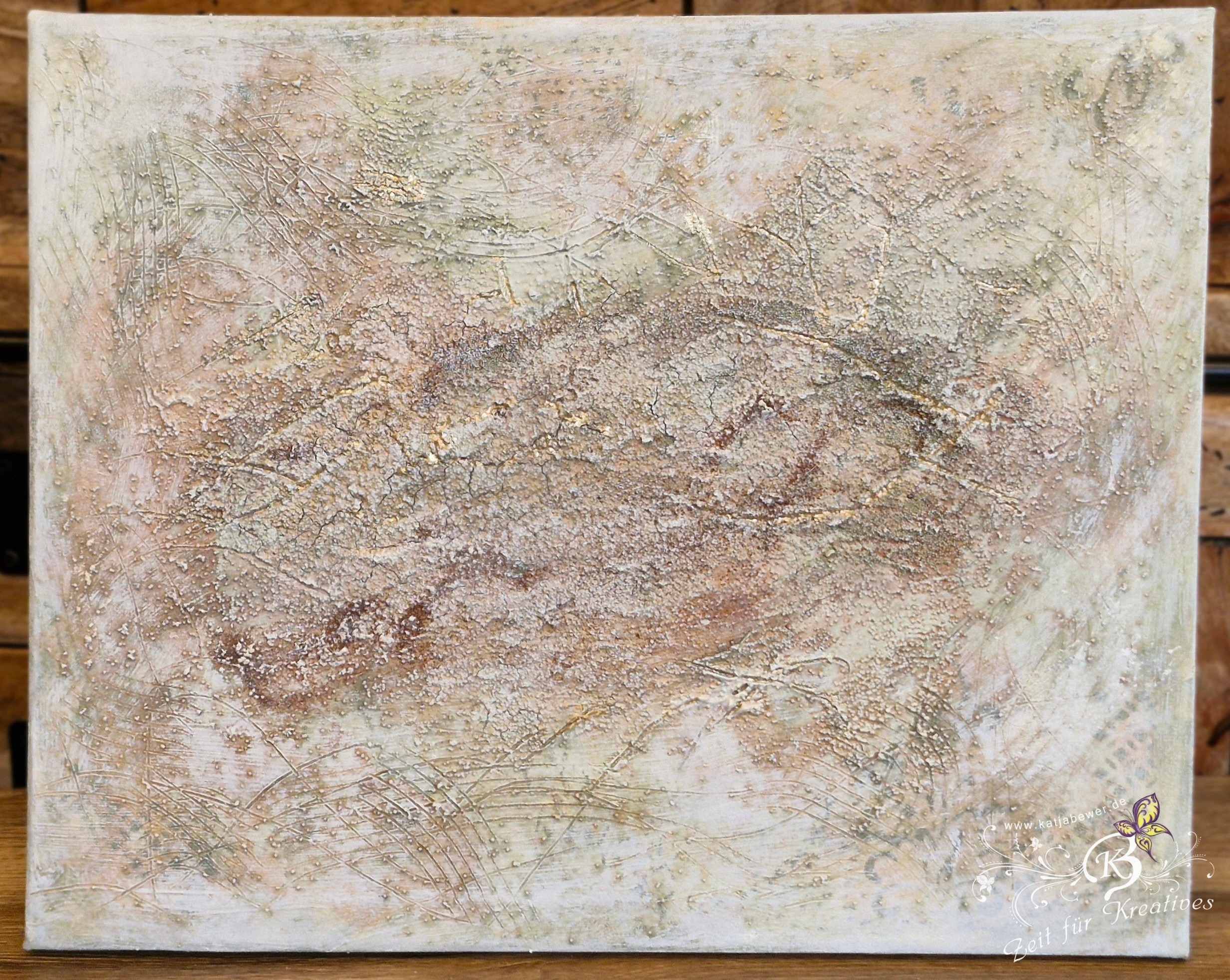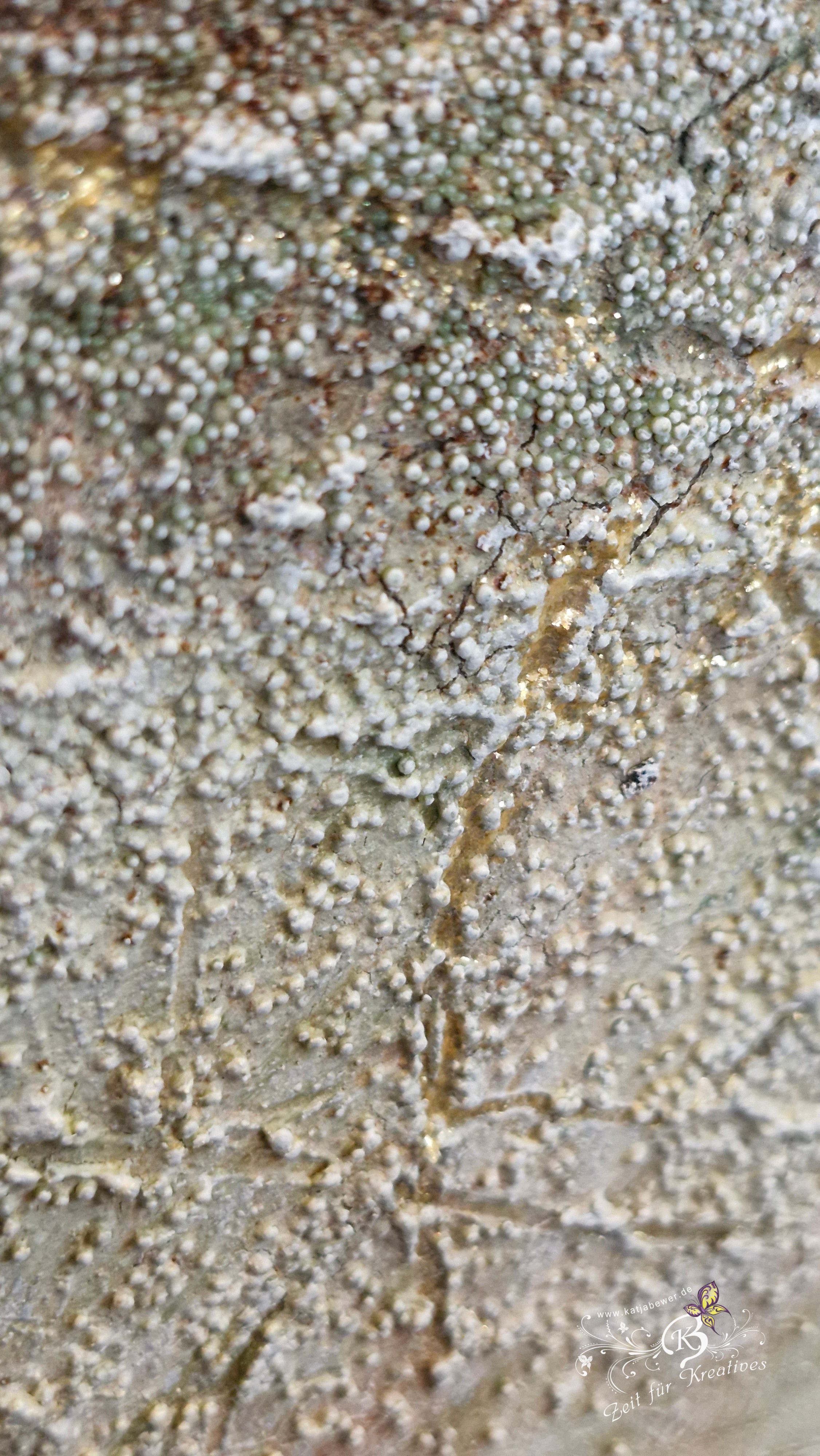 Gearbeitet habe ich mit den Farben von Aquarylic, Strukturen gearbeitet mit Graumehl und Micro-Perlen.